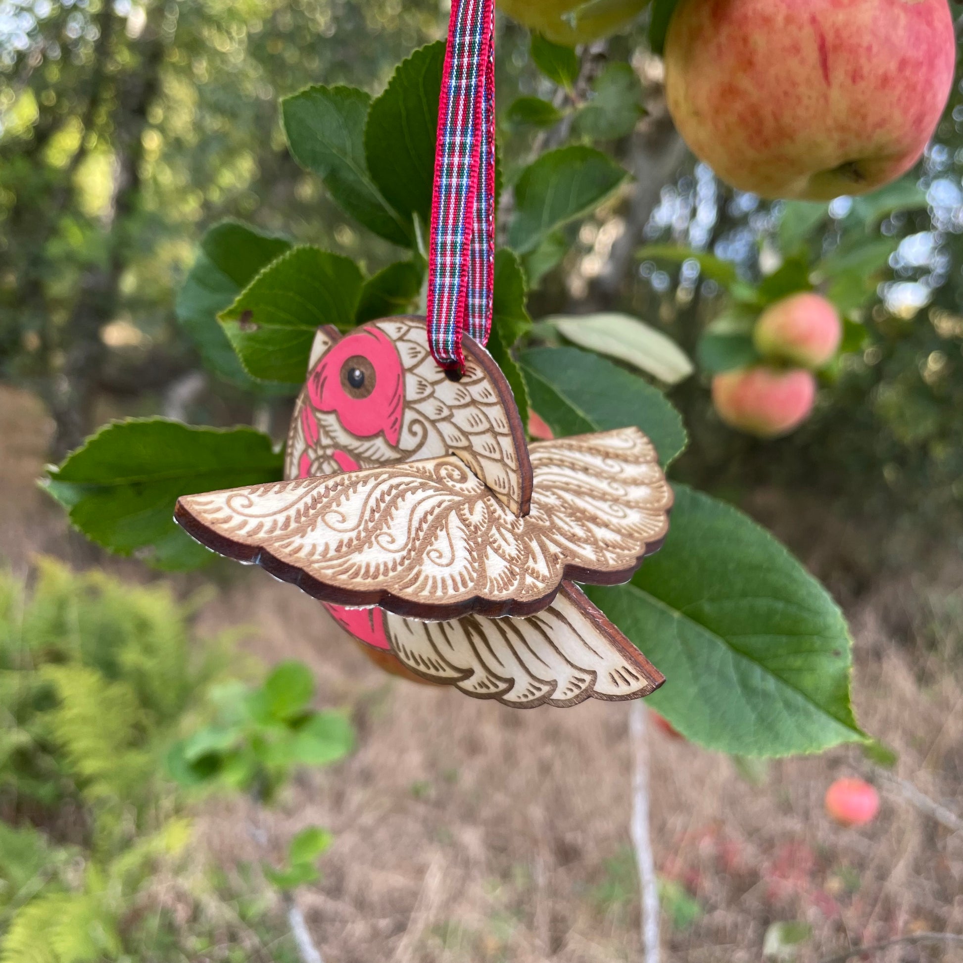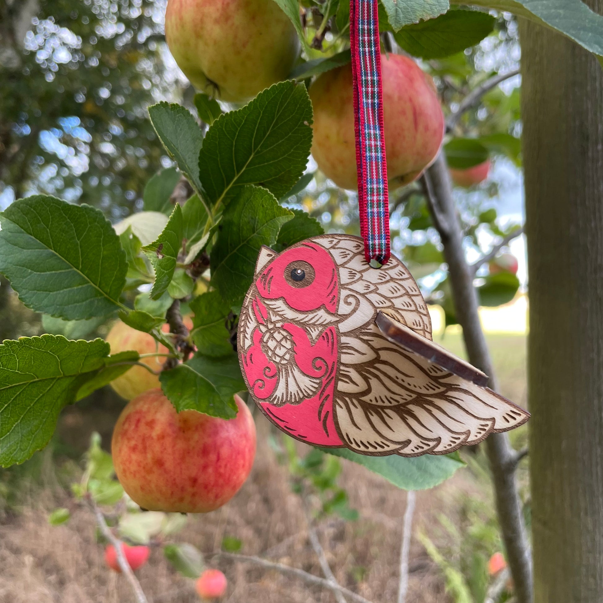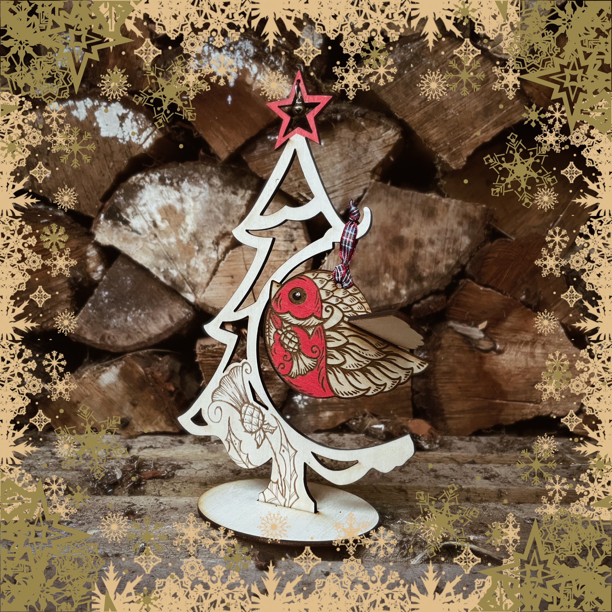 This wee Bob is made from laser engraving and cutting my original design in two parts, they pack flat for storage and shipping and fit together neatly so this wee Bob appears to be flying round your tree. Every one is hand finished with a lush red breast, he is an adorable addition to any Christmas tree. He has a wee tag with his poem and comes in his own gift bag.