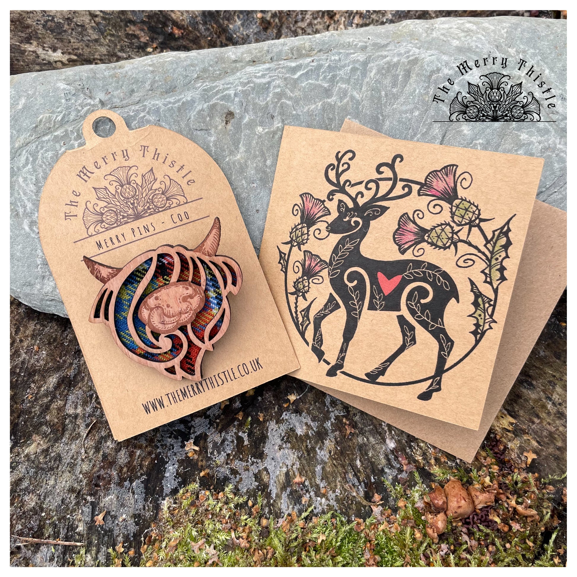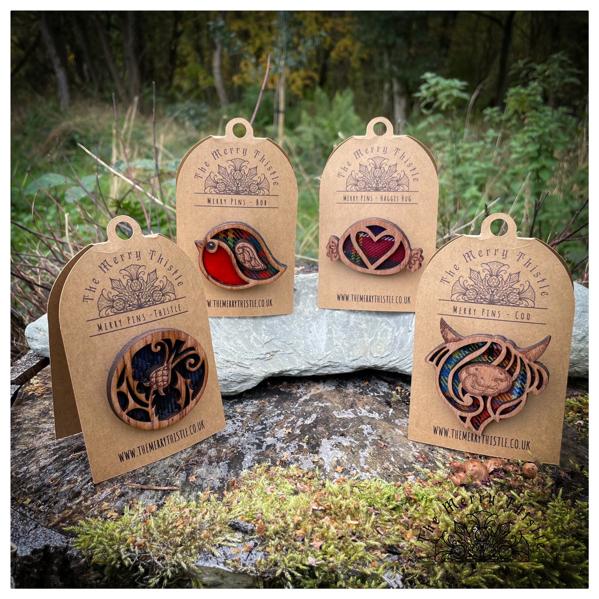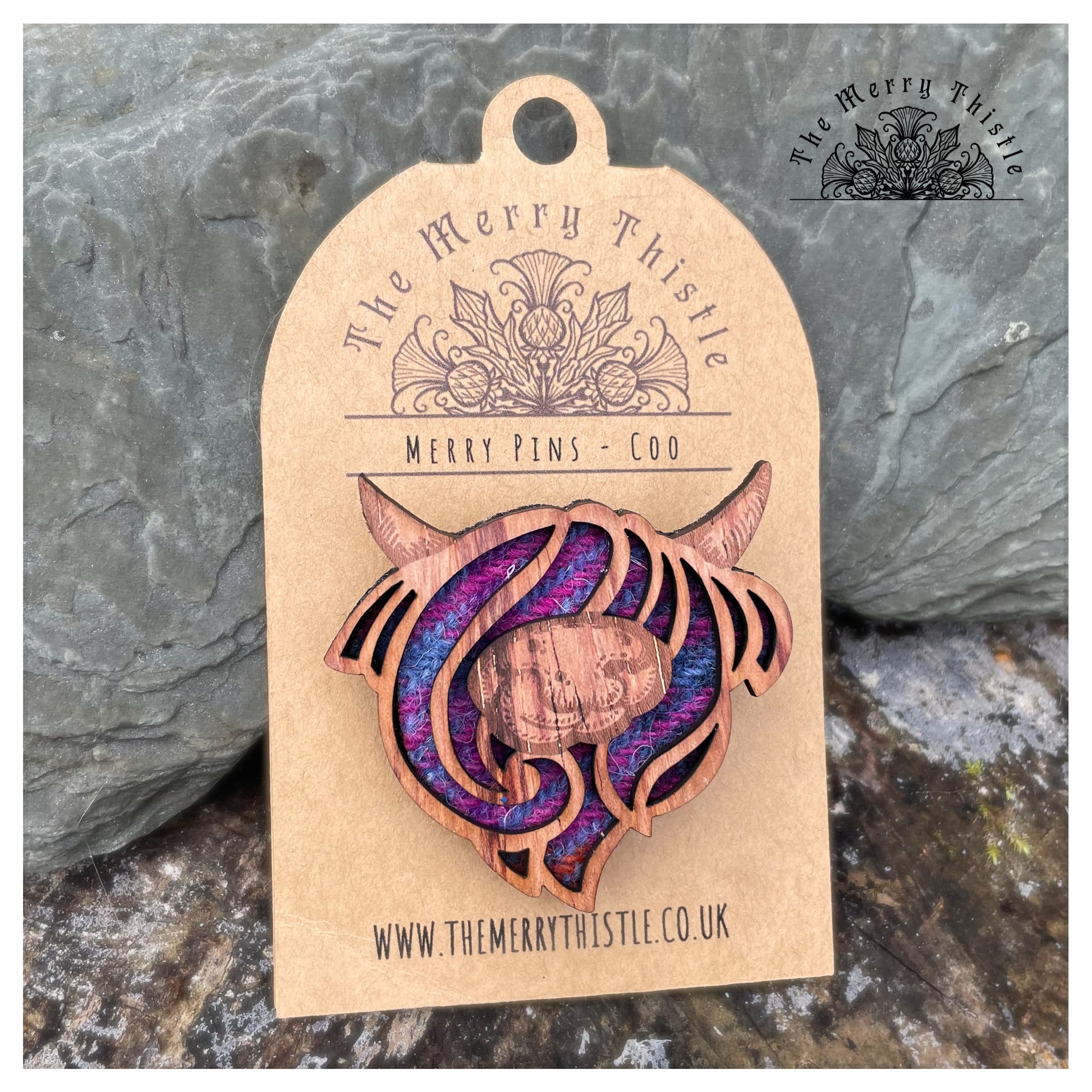 Part of my original #merrypins collection, this cheeky nose licker is laser engraved and cut from quality rustic wood, with a tartan inset, making him as Scottish as it comes! He is mounted on a thick felt back and secured with a brooch pin and mounted on an attractive kraft tag, giving room inside to write a special message. He looks absolutely stunning on a scarf or jacket.